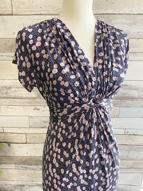 このデザインは、胸元、中央でたっぷりの生地が絞られたデザインですので、バストのボリュームやアップにも!そこから裾へのAラインは、気になるお腹あたりも誤魔化せる美ラインです。