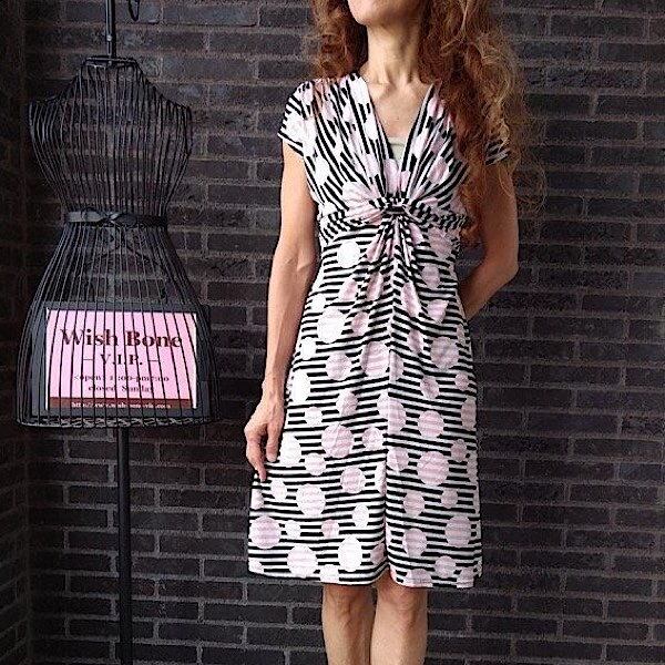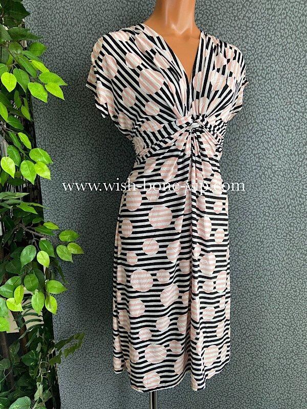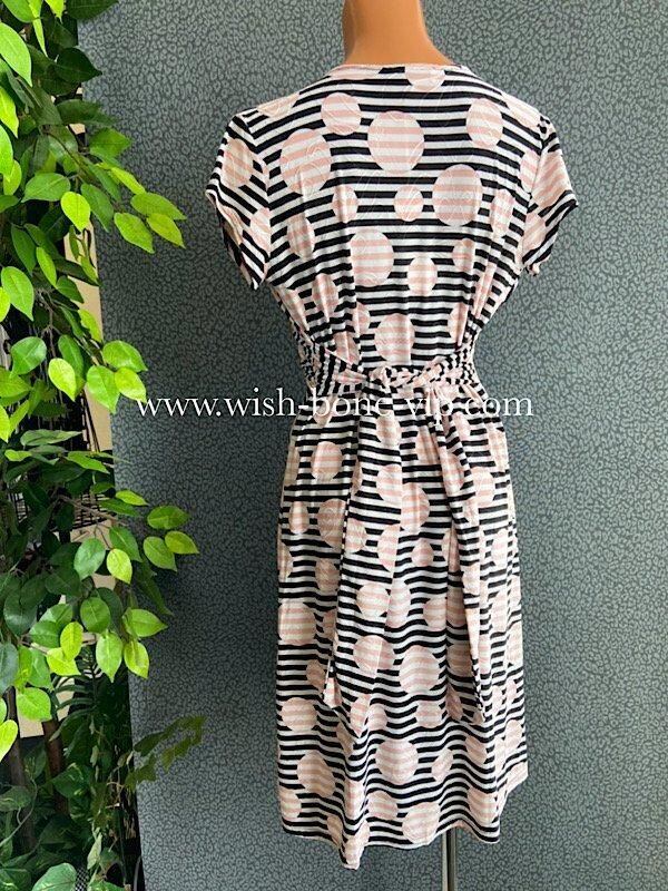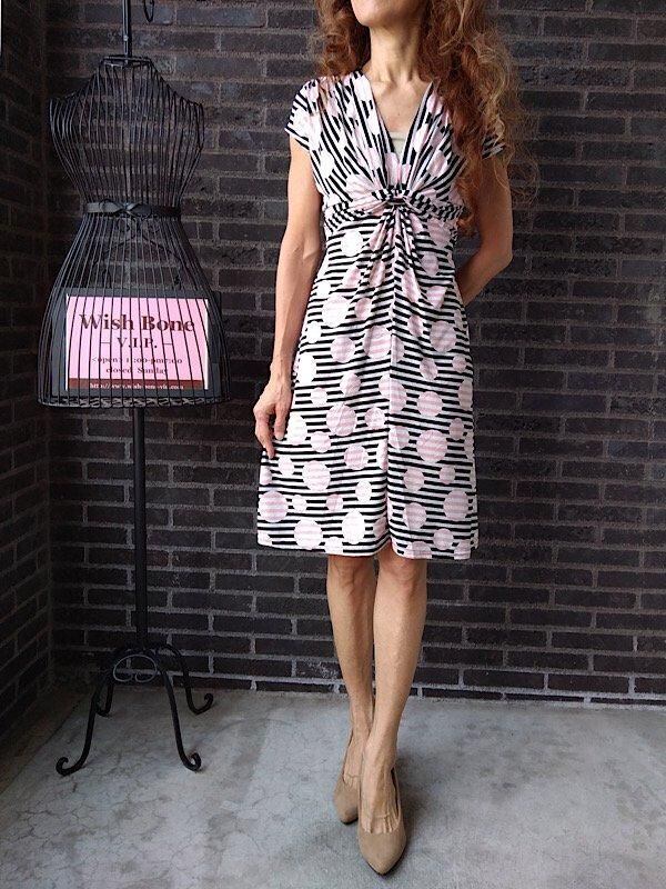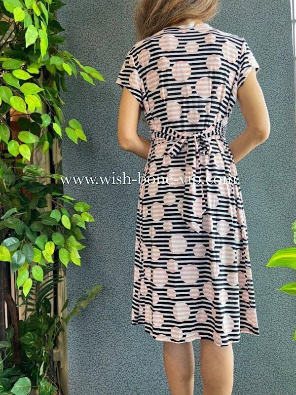 B品-フランス製インポートワンピース|FIFILLES de PARIS フィフィーユ・パリ|ジャージ・ストレッチ 膝丈ワンピース/ピンクストライプ 【アウトレットSALE】