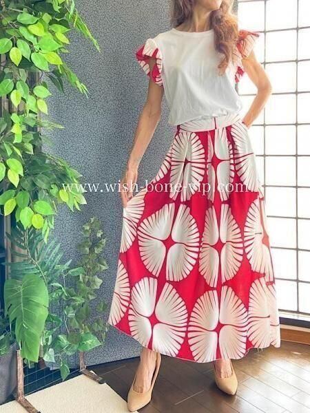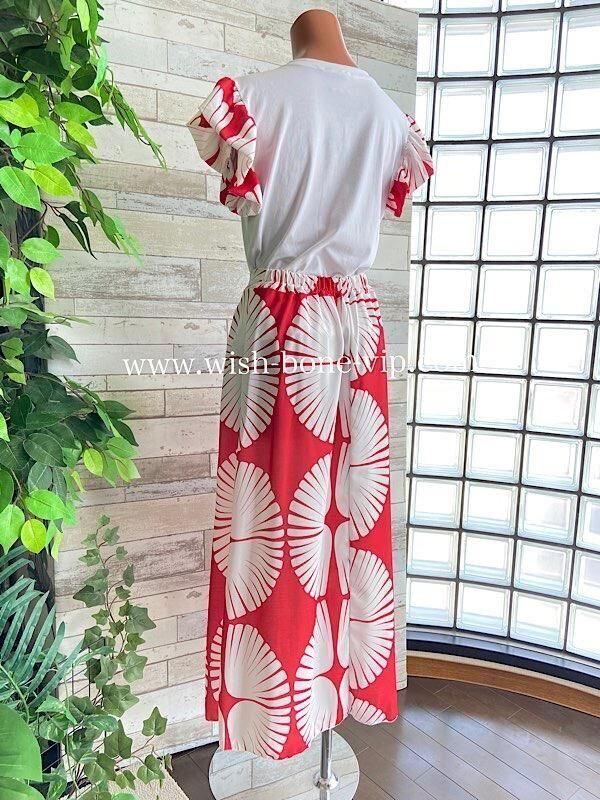 イタリア製インポート セットアップドレス|ロングスカート&カットソーSET|Made in Italy/ホワイト&レッド(S)(M)(L)(XL)ーSALE