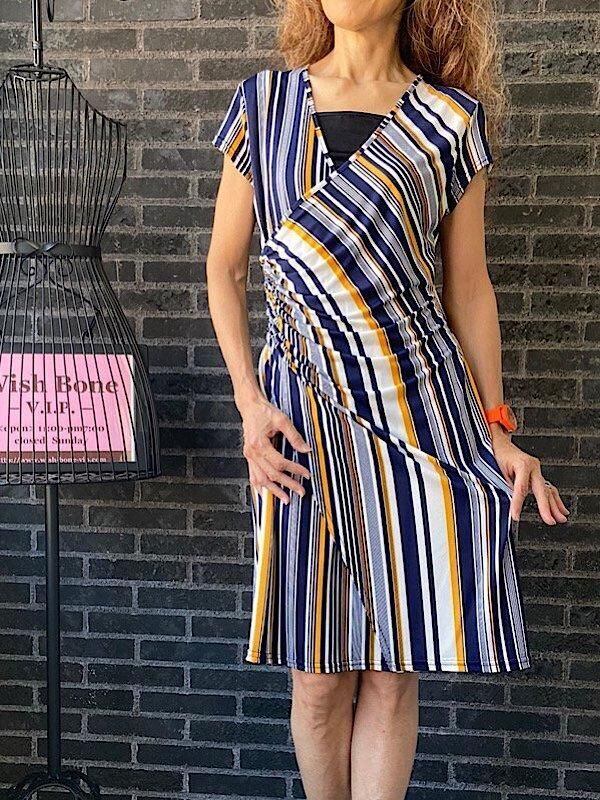 フランス製インポートワンピース|FIFILLES de PARIS フィフィーユ・パリ|プリントワンピース|ジャージ・ストレッチ カシュクールワンピース/ネイビー