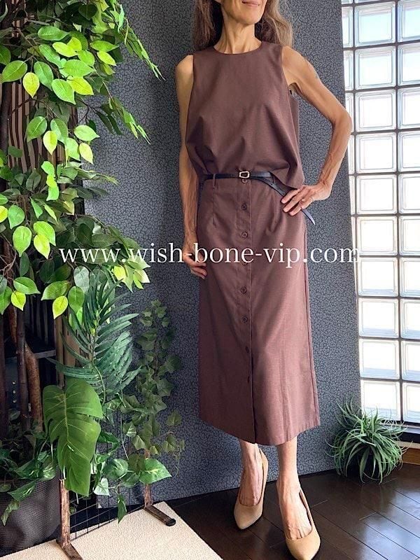 コットン&リネン セットアップ・ワンピース風デザイン|トップス&ロングスカート| ブラウン系