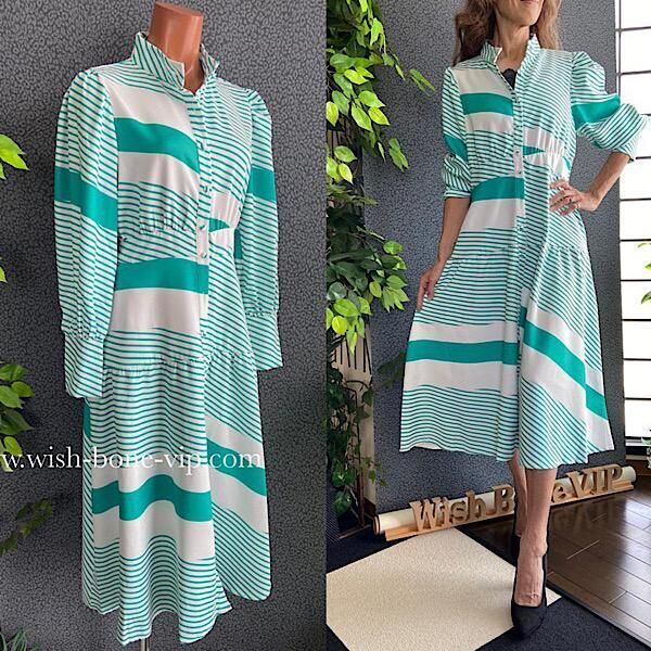 フランスインポート シャツワンピース|スタンドカラー&長袖ロング丈・ミモレワンピース/グリーンライン