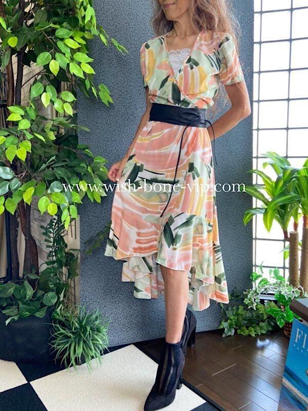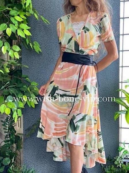 アウトレットSALE/UKインポートワンピース|ラップ・アシンメトリー ロング・ミモレワンピース|淡いパステル・ペイントプリント
