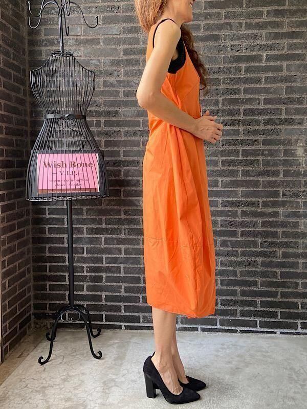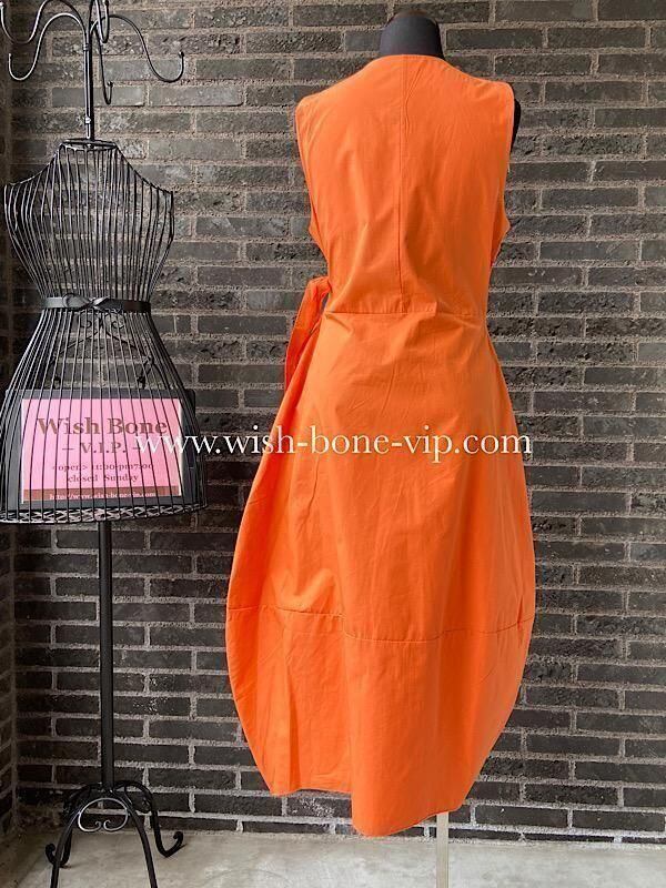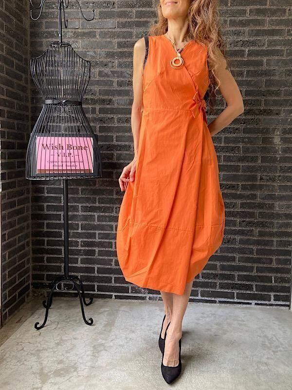 イタリア製インポートワンピース|Made in ITALY|コットン100%ラップ・バルーンワンピース|ミモレ・ロングワンピース/オレンジ無地