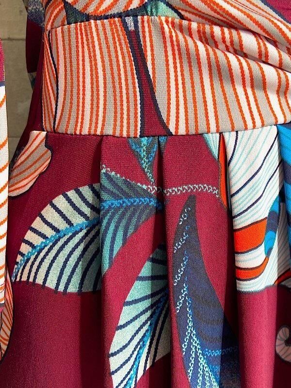 イタリア製七分袖ワンピース/Made in Italy|伸縮ジャージ・フラワー フラワープリントワンピース/ボルドー系