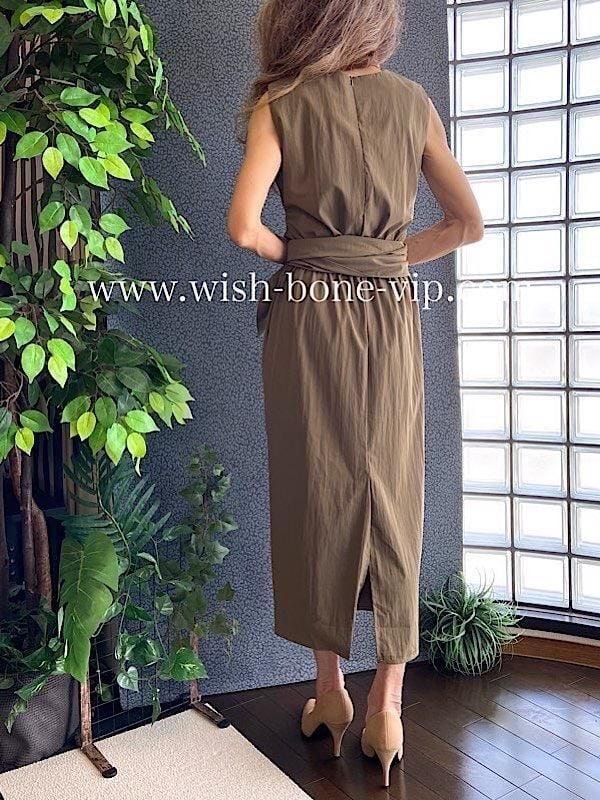 きれいめ無地ロングワンピース|シンプルタイト・ストレートワンピース|きれいめカジュアル / カーキ