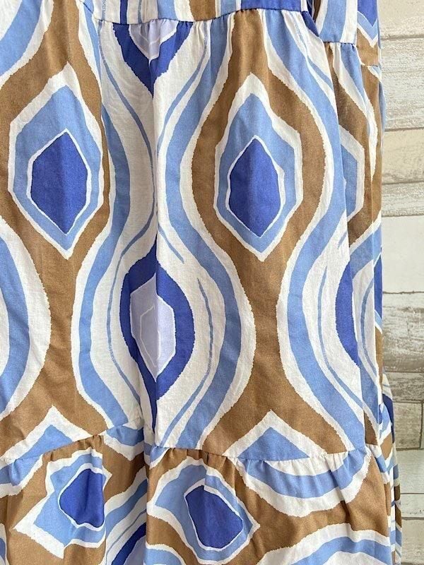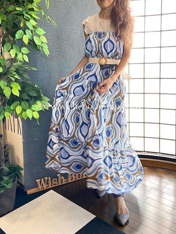 色合いがとてもオシャレなベアトップワンピースです。イタリアらしい色柄がカッコよくて、100%コットンの涼しい素材もとても気持ち良いですよ。ボリューム感もゴージャスです。