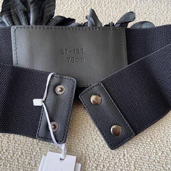 大きなお花がステキなベルトです。ウエストにマークするだけでシンプルなお洋服が華やぎ気分が上がります。ゴムなので使い勝手も良いと思います。