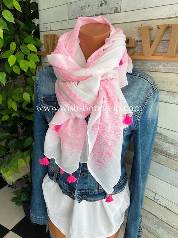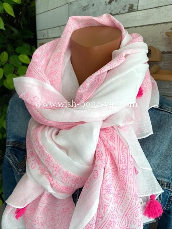 フランスインポート大判ストール |コットン100%ロングストール・心地よい肌触りのスカーフ/ホワイト&ピンク