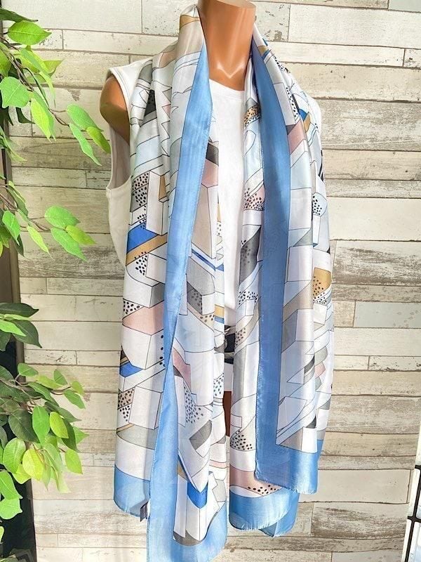 イタリア/ITALYインポート 大判ストール・SILK Feeling ツヤ/ロングストール・スカーフ/爽やかブルー