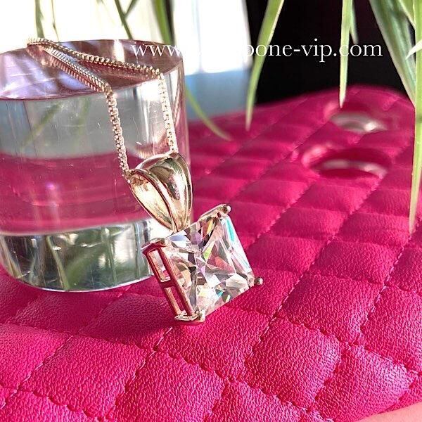 NewYorkインポート|キュービックジルコニア&シルバーSV925ネックレス|大粒スクエアCZ12mmペンダント/チェーン付き