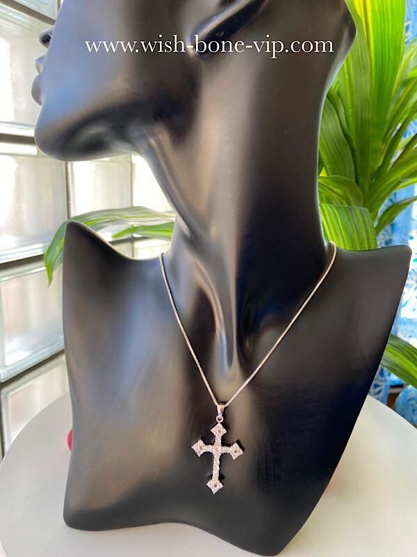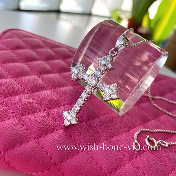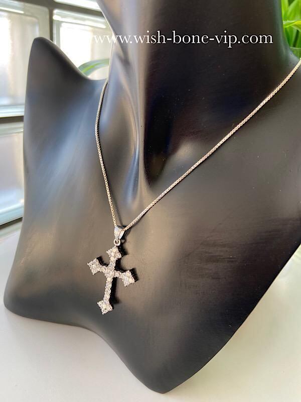 New York/USA インポートジュエリー|CZ/キュービックジルコニア&シルバーSV925|プラチナコーティング|パヴェ・デザイン クロス十字架ネックレス・チェーン付き