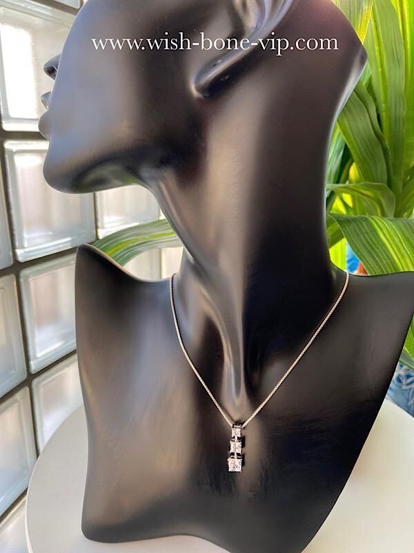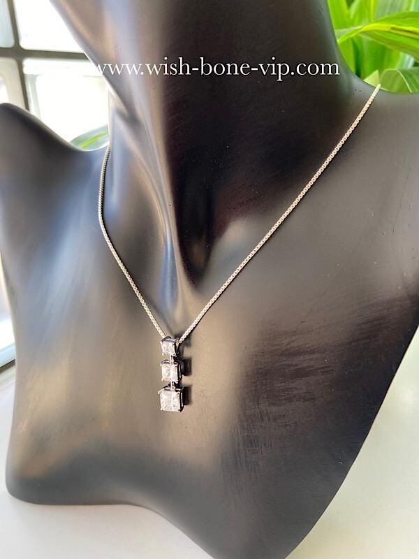重ね付けにも最適☆スクエアのジルコニアストーンが3つ並んだシンプルなオトナの女デザインです。小さめネックレスの中で一番人気☆プレゼントにも最適です。