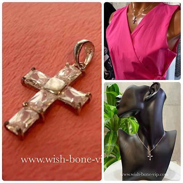 NewYorkインポートジュエリー|CZ/キュービックジルコニア&シルバーSV925|プラチナコーティング|プチ・デザイン クロスネックレス