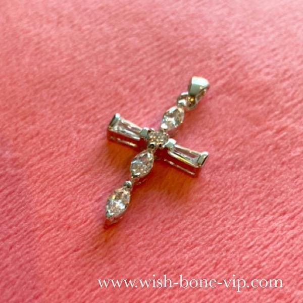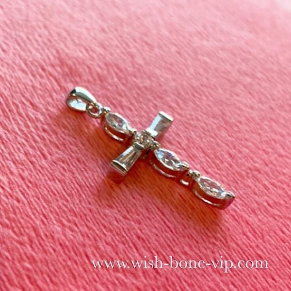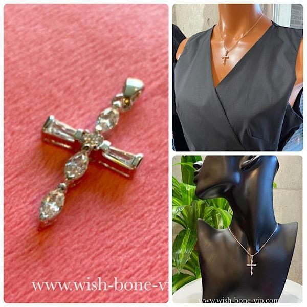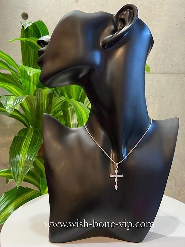 NewYorkインポートジュエリー|CZ/キュービックジルコニア&シルバーSV925|プラチナコーティング|プチ・デザイン クロスネックレス