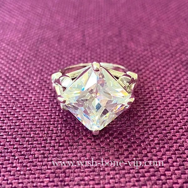 USA/New York|大粒ジルコニア・CZ/キュービックジルコニアリング|スクエアリング|クリアー&シルバー