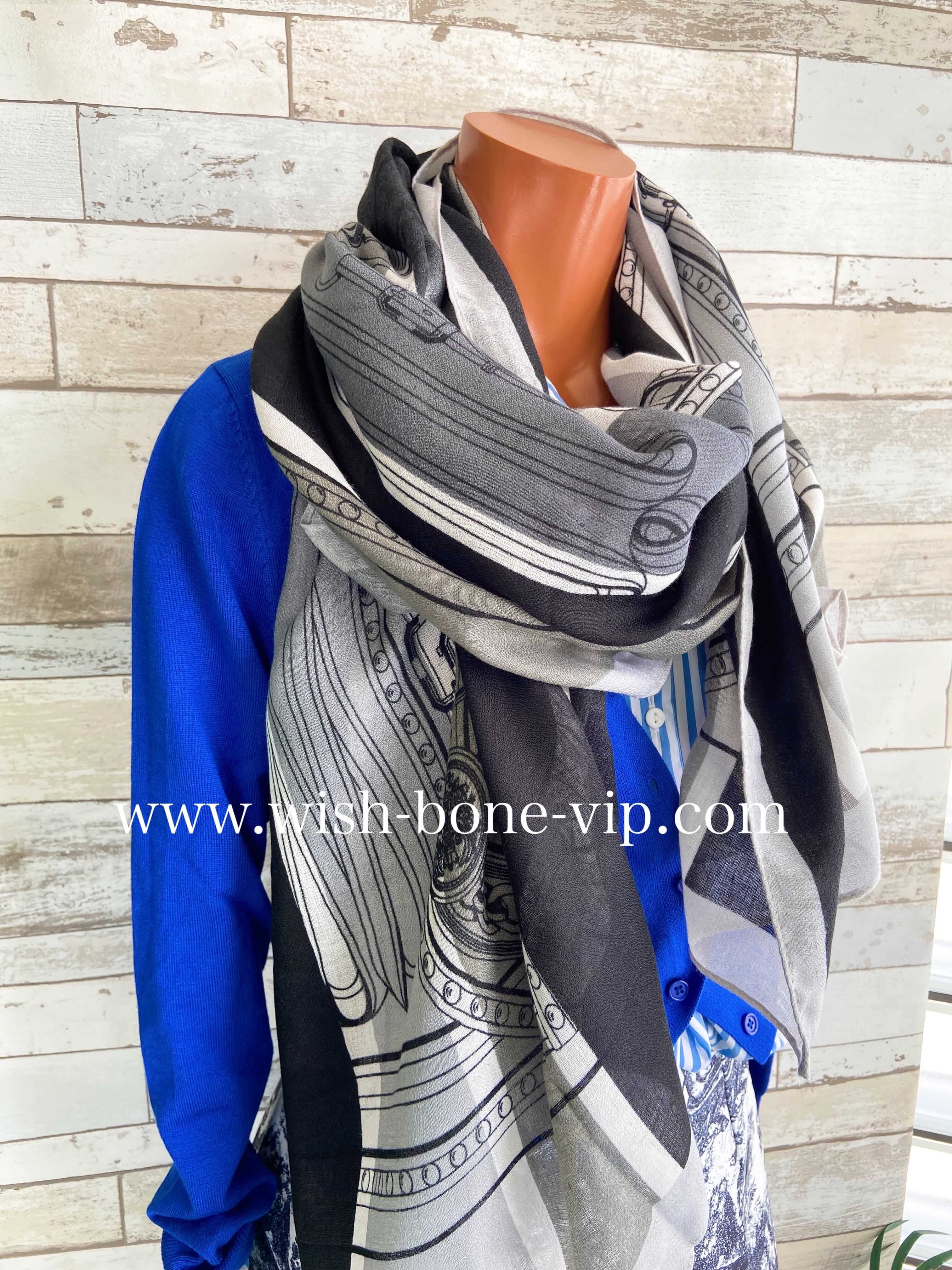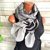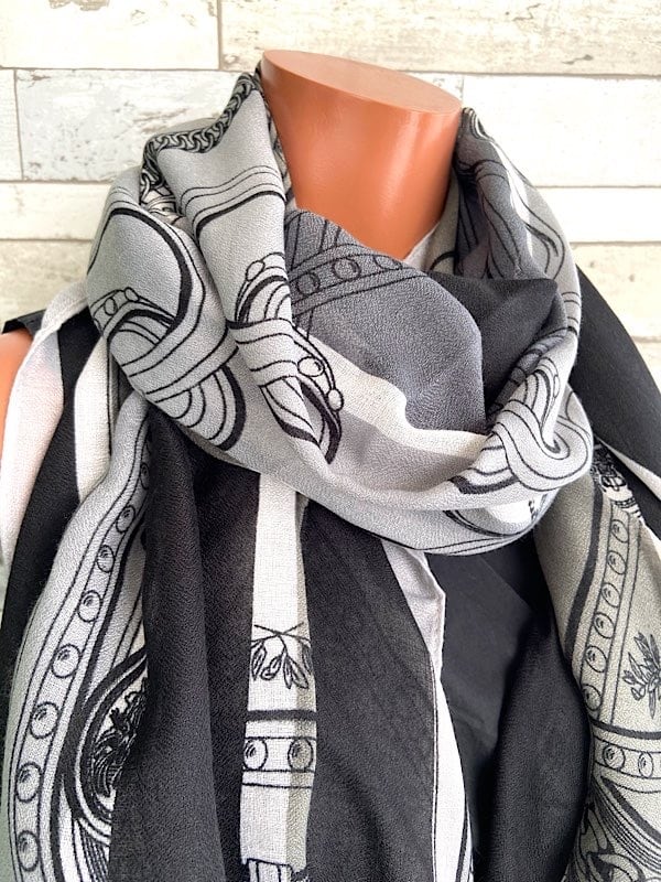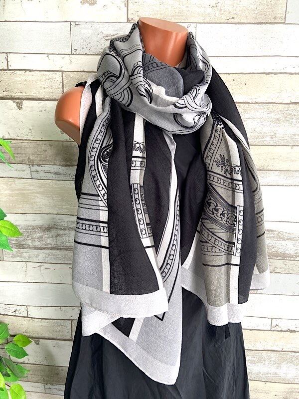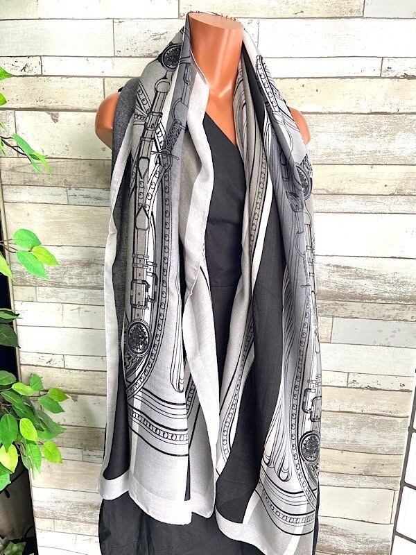 インポート 大判ストール|190cm ロングストール・スカーフ|VISCOSE/モノトーン・ブラック&グレー